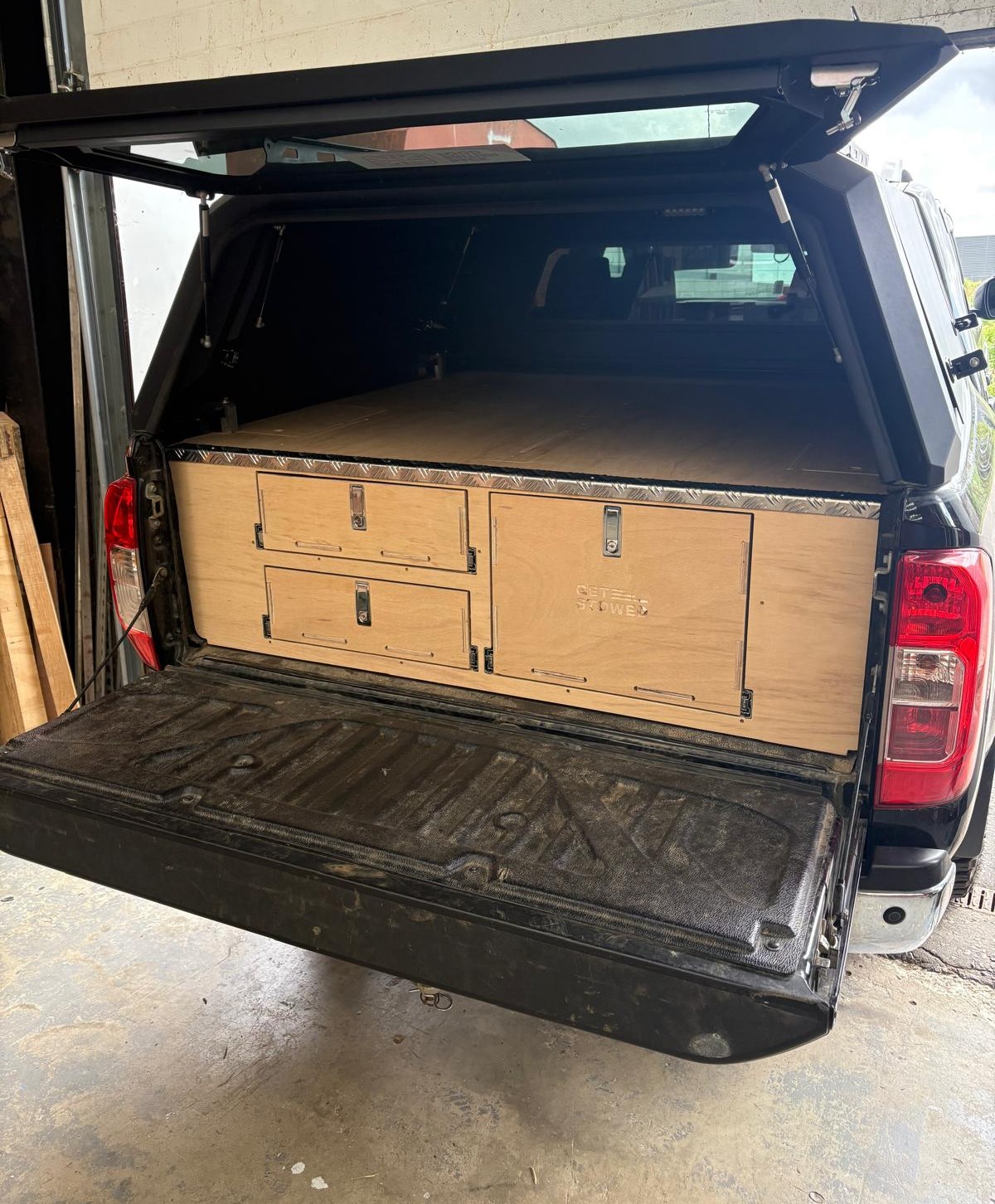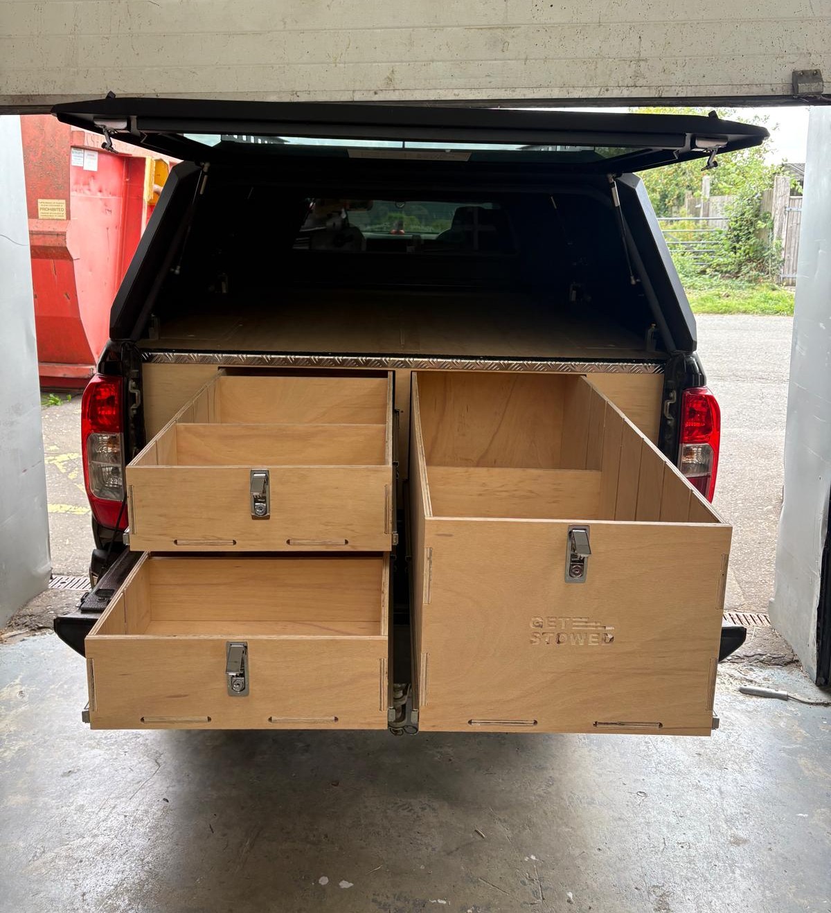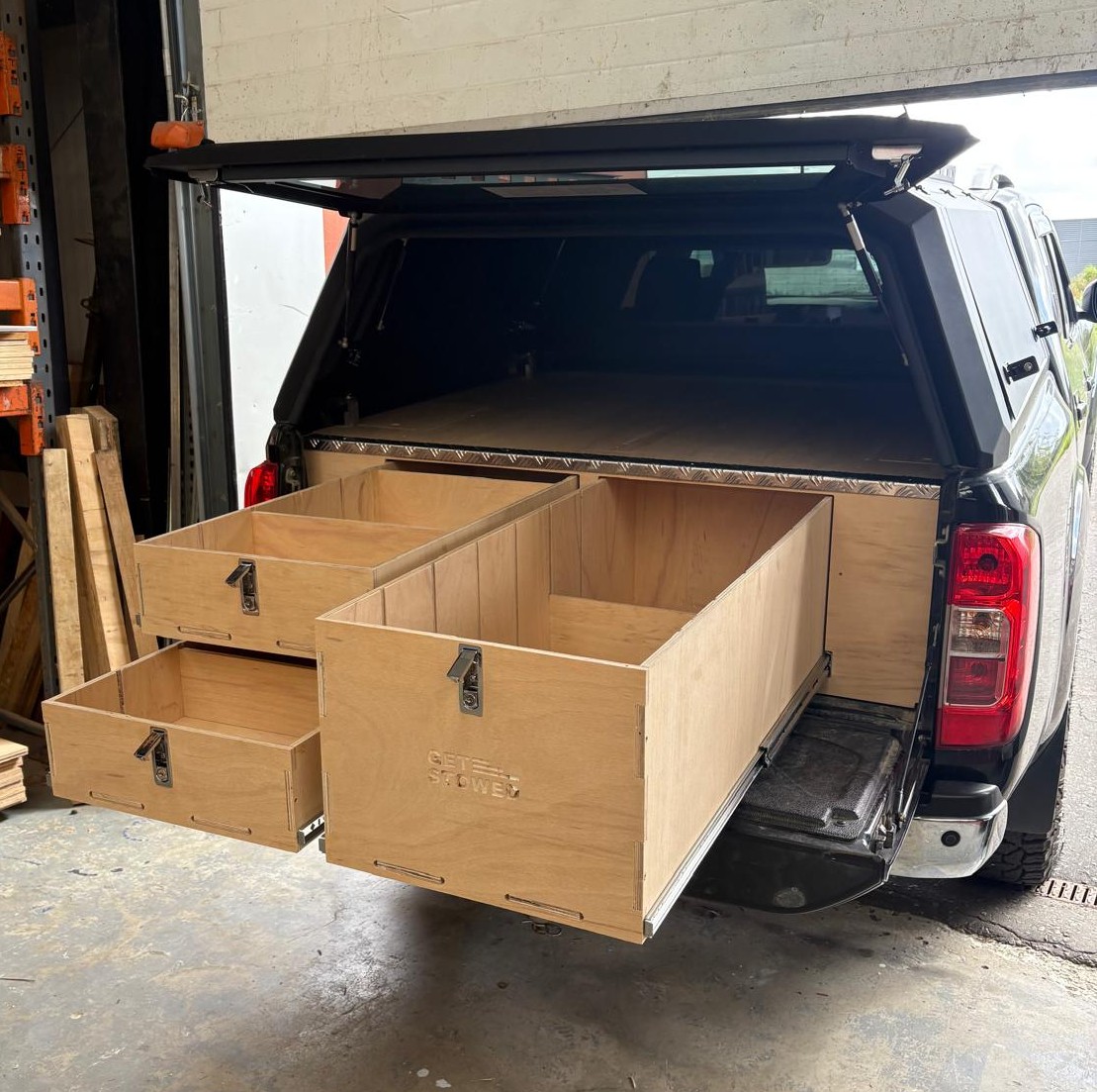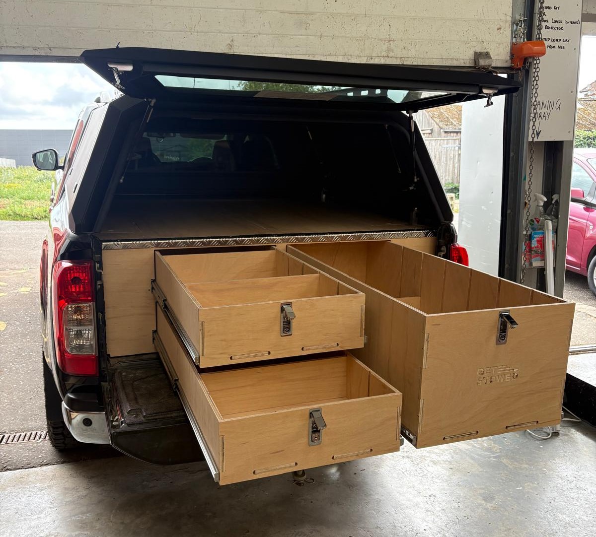 Designed and manufactured by Get Stowed in the UK, our truck storage systems are fitted without any fixings to your vehicle and can be removed later on if necessary. Our units are designed to be fitted into vehicles with a canopy. The canopy doesn’t need to be removed to fit the unit.